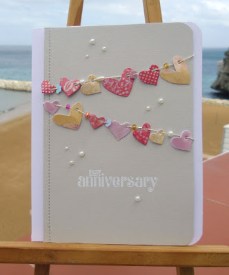 I have made another Shaker Card this time an Anniversary card..using the same Simon Says Stamp Die as i used a few weeks ago to make a Wedding Card .....using First Edition Papers..the whole pad is gorgeous...i inked the edges to give the Pink paper a bit more colour...will the barely Pink Colour Cloud...